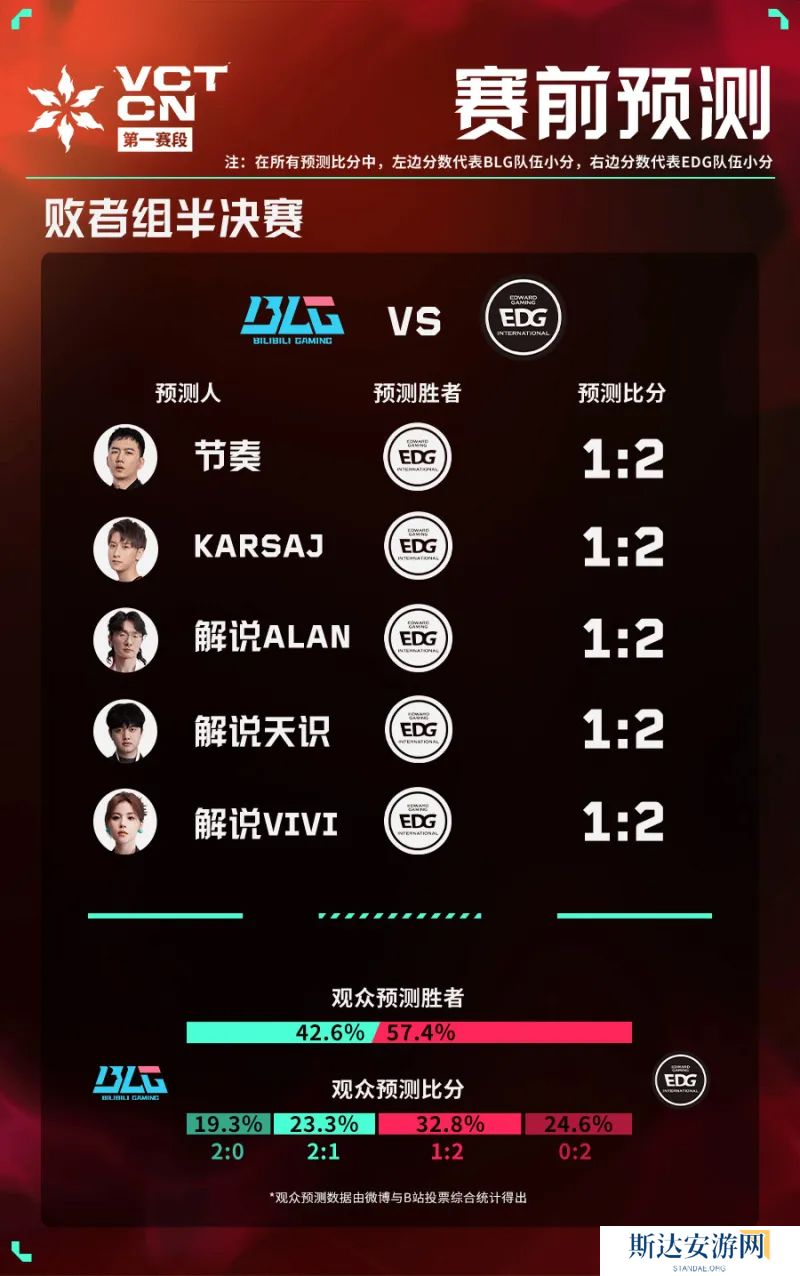 季后赛决赛阶段首日比赛即将打响,除了十位观赛嘉宾继续陪伴大家一起观赛外,更有瓦友比分预测结果火热来袭~BLG vs EDG:全员预测EDG 2-1 BLG。WOL vs XLG:四人预测XLG 2-1 WOL;一人预测WOL 2-1 XLG。