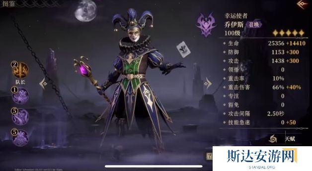 接着是乔伊斯这位史诗英雄,他的被动技能使得自己和自己的召唤物之间建立起一道特殊的链接,当召唤物获得增益时,自身也能够同步获得相同的增益效果,他的战技主要针对生命值最低的敌人,能够对其造成210%的黯蚀伤害,如果场上存在自己所召唤的幸运幻影,那么这个幻影就会模仿这次的施法动作,造成同样的伤害,他的威能技是在指定位置召唤一个持续45秒的幻影,而且最多可以同时存在3个幻影,这些幻影每次进行普通攻击时,都能够形成70%的输出值,为战斗提供不小的助力。