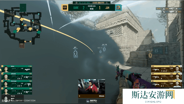 手枪局,JJH作为进攻方配合闪光Rush B,但被CT英雄燕双鹰全部接住,JJH果断ECO让分。长枪局,The QUBE黑屋前压被架死光速白给。后续进入经济局和强起局连丢三分。第七回合,QUBE混起但是枪法发挥沙鹰连秒两人,拿到信息后将JJH包围夹死在B斜。下一回合,JJH一波爆弹提B光速进点,道具充足拿下3v3守包残局。第九回合,JJH爆弹进A后留下2v1残局,但沟通失误让CT强拆成功失分。后续手感火热的JJH没再给对手机会连拿三分。上半场JJH以8-4大优势暂时领先。