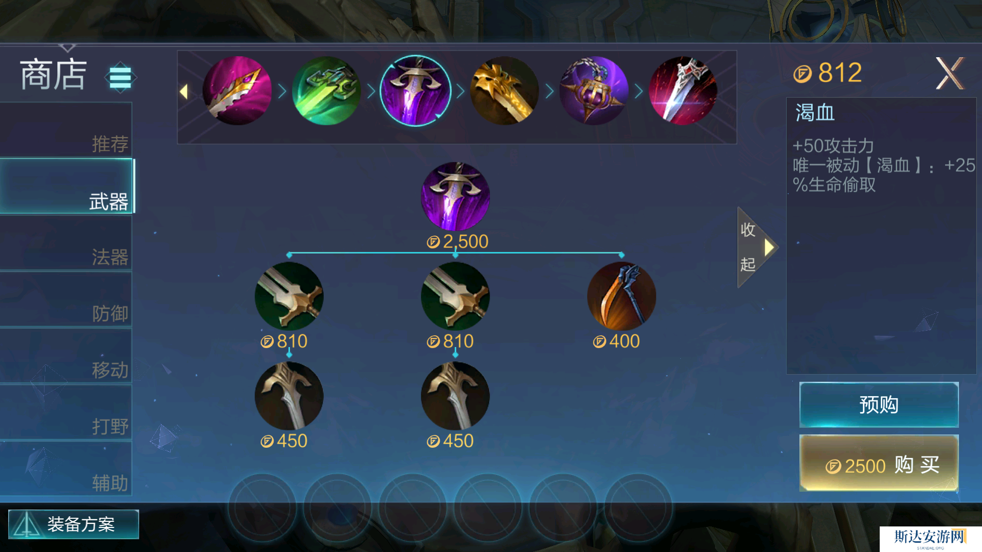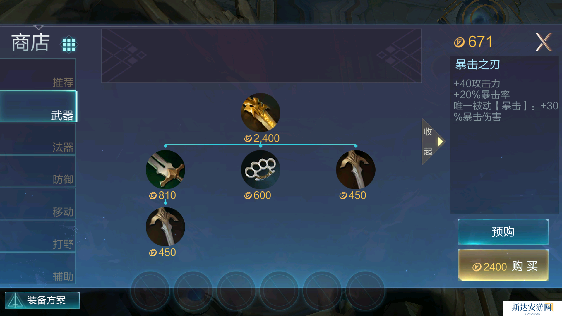 5、暴击之刃这件装备给孙悟空提高暴击率,暴击伤害打人会更痛也就是说孙悟空的伤害会再提升一个档次,这件装备可以优先做出这样收益会来的更快一些,前期对面是根本扛不住孙悟空的伤害的。