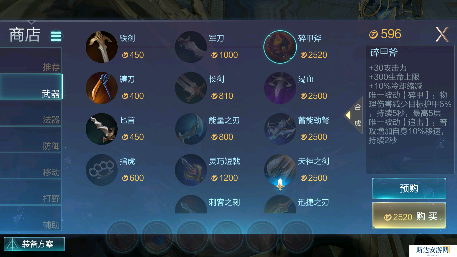 1、碎甲斧是孙悟空的核心装备同时也是性价比非常高的一件装备,攻击力生命值以及冷却缩减都有加成,最关键是装备的被动可以降低目标的护甲普攻还能增加移速,大幅度提升了孙悟空的作战能力。