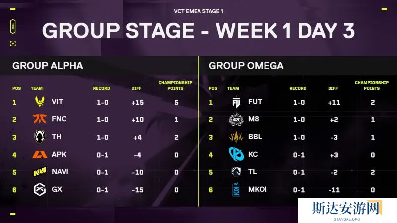 ALPHA组方面,VIT、FNC、TH分别战胜GX、NAVI、APK,赢下新赛季首战开门红。