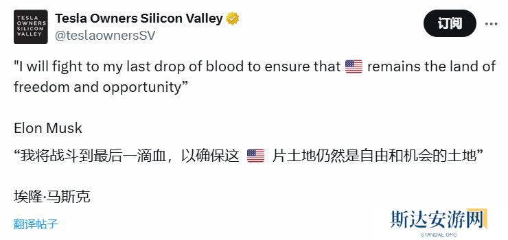 就在此时,一则与知名企业家马斯克有关的推文引发了猫老大的关注。马斯克转发了一则包含自己照片的推文,该推文宣称:“我将战斗到最后一滴血,以确保美国仍旧是充满自由和机遇的土地。”照片中,马斯克手握武士刀,背景则是美国国旗。