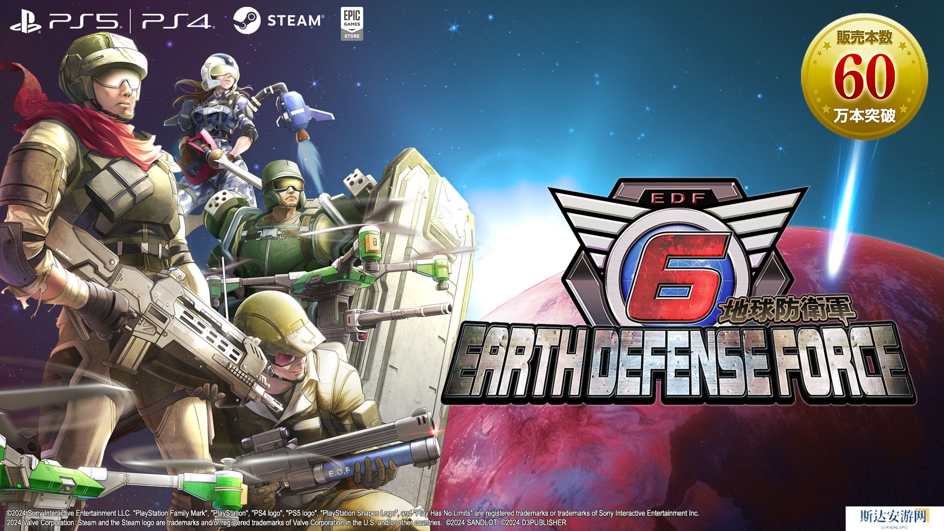 今日,发行商D3 Publisher和开发商Sandlot宣布《地球防卫军6(Earth Defense Force 6)》的全球总销量已超过60万份,并感谢玩家一直以来的支持。