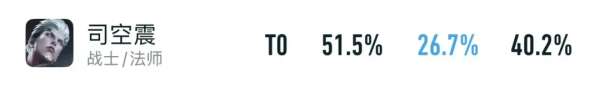 以上是司空震目前的巅峰赛数据,BP率高达66.9%,优先级遥遥领先就算了,胜率还有51.5%,属实真正的“版本大爹”。