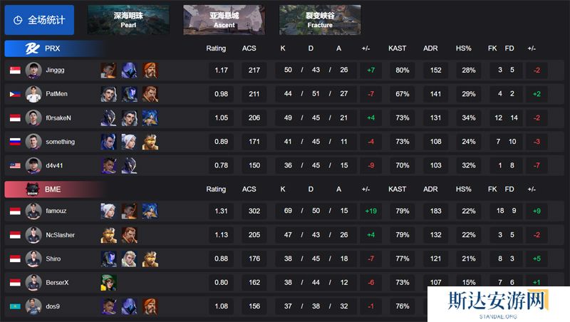 图三裂变峡谷,dos9与NcSlasher双双贡献精彩表现,Jinggg独砍27杀难救主,BME最终以13-9终结比赛,送给PRX三连败的同时,自己也以三连胜提前锁定季后赛资格。