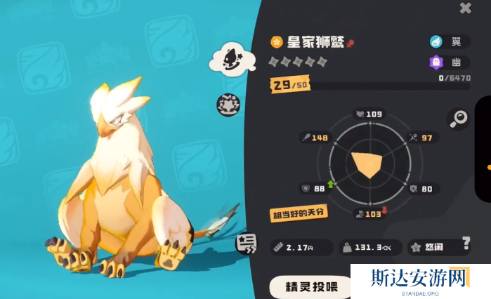 在捕捉这个角色的时候,可以先用高等级的咕噜球,具体的操作方法就是先把对方打到残血的状态,然后使用这个咕噜球捕捉,角色属于风属性,在攻击的时候可以着重的去选择土属性的对手对抗,但需要注意的是在游戏里机械属性的物种会克制皇家狮鹫,想要让宠物有更加优秀的战斗能力展现,那就需要多去提升等级,等到后期会有较高的战斗力和防御力,再次遇到同级对手的时候就可以轻松对抗。