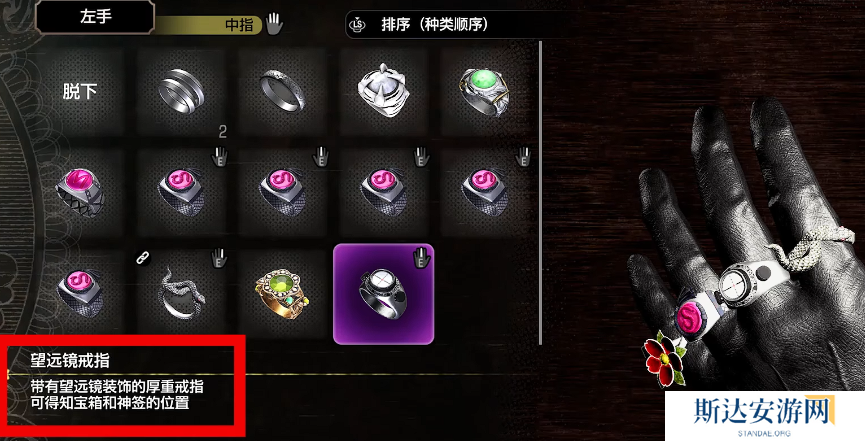 带有望远镜装饰的厚重戒指,可得知宝箱和神签的位置。