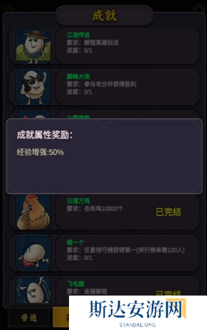 在成就中有一个高级成就,[日理万鸡,需要击杀鸡10000个],成就属性奖励为:[经验增强50%]。