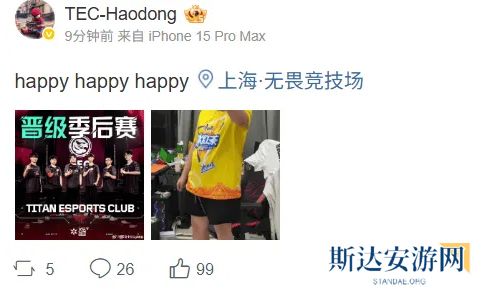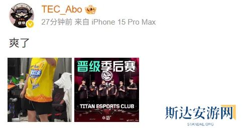 晋级季后赛!TEC选手发文:爽了;继续努力下去!