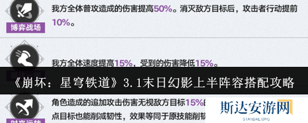 以上就是火芒游戏小编整理带来的崩坏星穹铁道3.1末日幻影上半阵容搭配攻略,更多相关游戏攻略,请关注火芒游戏!