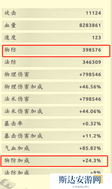 我们拿物防举例子,加成24.3%之后的属性时398576,那么就是398576/1.243,就是你的原本防御,其他的同理,会这个了,你就清楚的知道你的阵法加成,到底加了多少攻击。