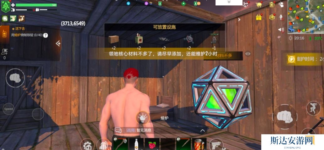 在资源有限的环境中,建造一个安全的避难所至关重要,玩家可以自由选择地点建造基地,利用采集到的材料搭建避难所,作为物资补给和存储的中心。随着游戏的进展,玩家可以升级营地设施,解锁高级道具,从而提升生存能力。选址时,靠近水源和食物获取点是明智之举,便于日常补给。