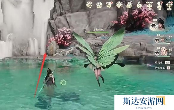 3、接着视角向北走,可以在瀑布下面拿到【宝箱】。