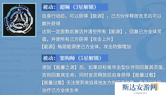 达到一定层数后激活并清空所有[能源],回复己方全体灵值,并使所有己方获得(攻击上升]