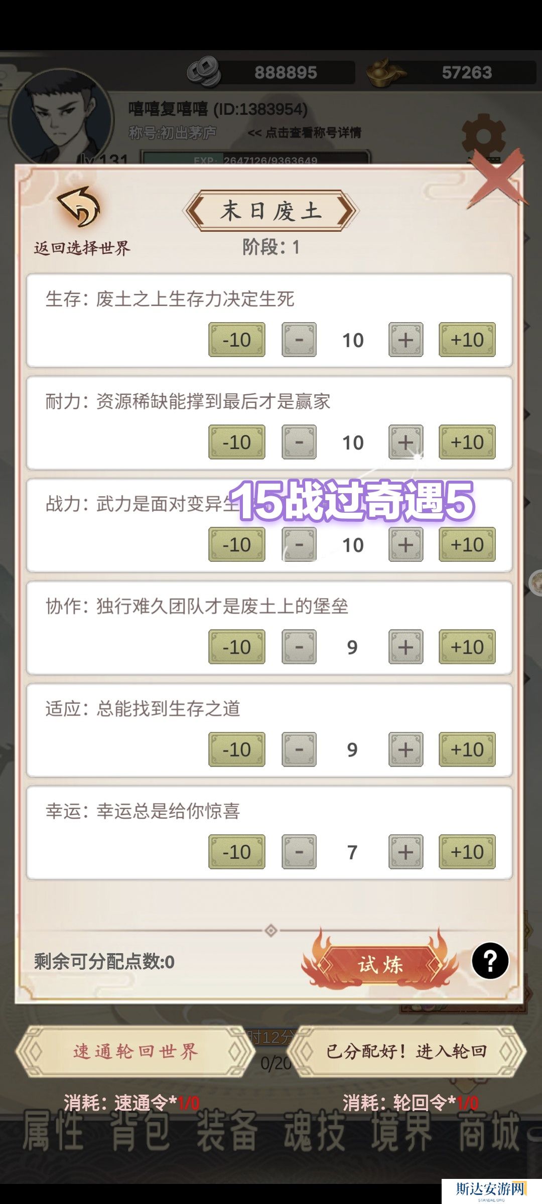 《穿越万世轮回》轮回世界二奇遇宝箱加点推荐