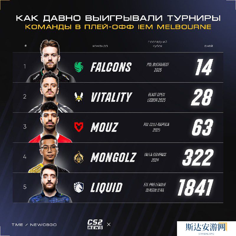 以下为IEM 墨尔本六强上次夺冠时间: