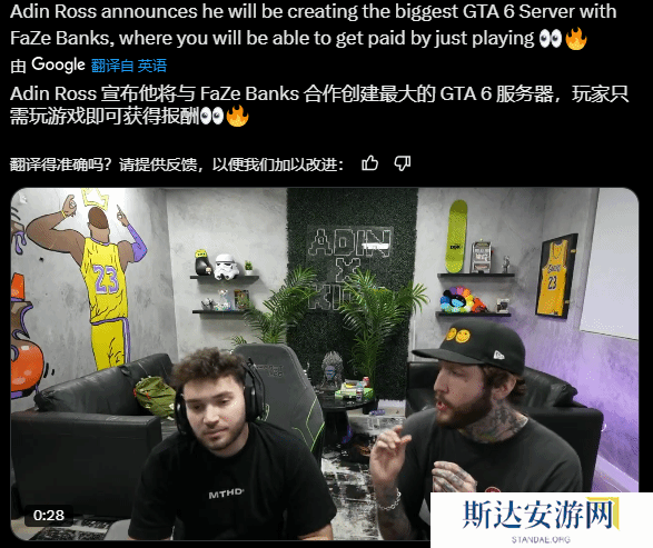 在Youtube上拥有454万粉丝的主播Adin Ross透露,他正计划打造《GTA6》私人服务器,玩家可在其中获得真实的金钱。