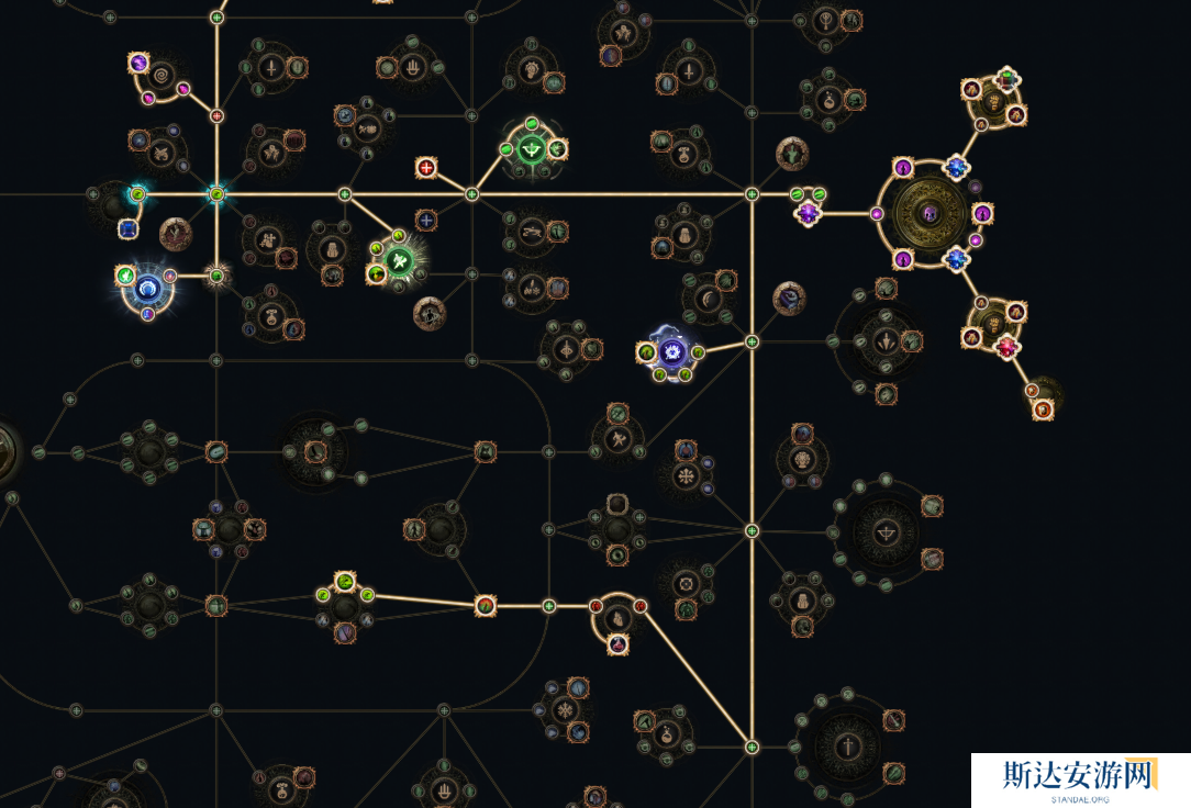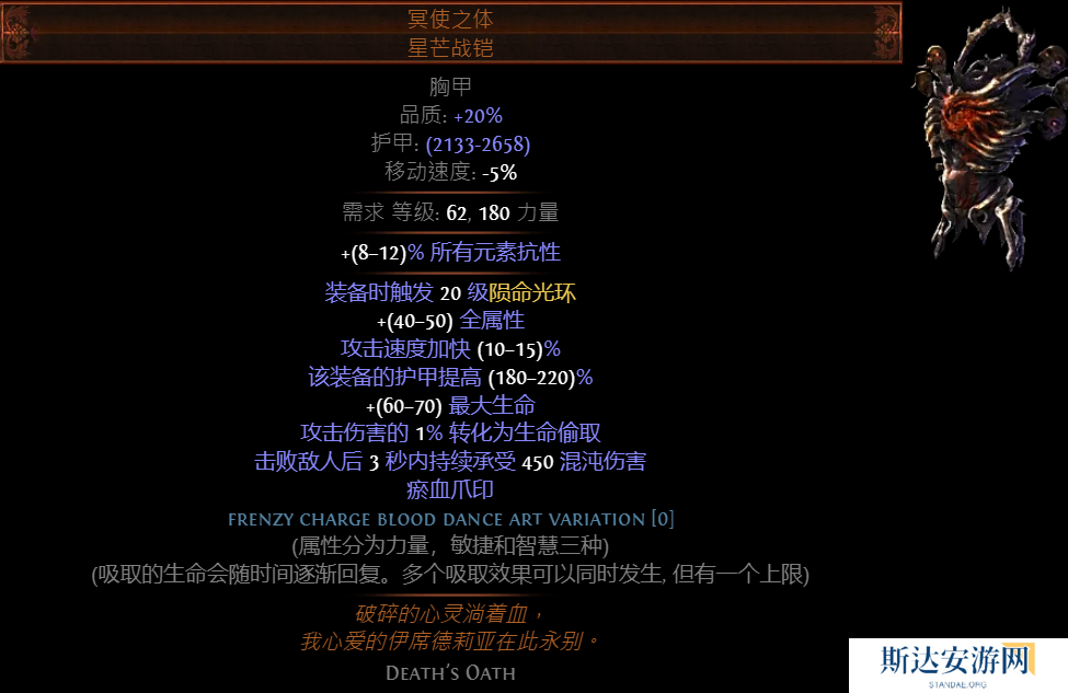 流放之路贵族死神光环bd使用冥使之体衣服洗出两绿两蓝,阐释之杖或灾害买不起弓可选,任意六连弓,需要注意将混沌抗撑满75,比如附魔,或点亮以获得混沌抗。