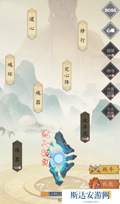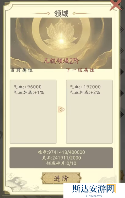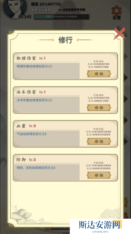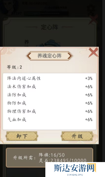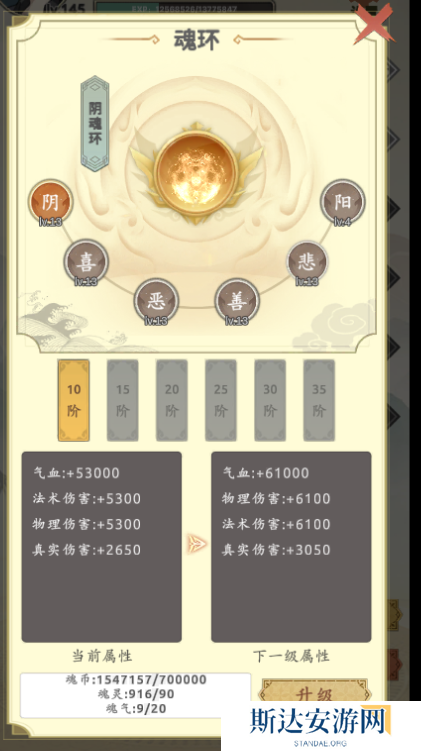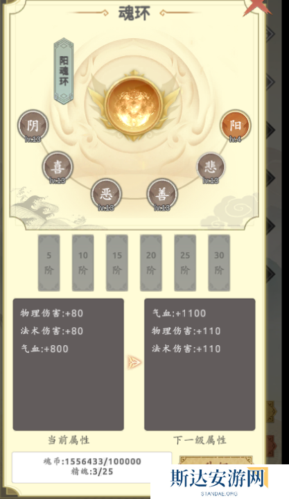 这个是新手提升属性的主要来源,前期90%的属性都是靠的这里,超过10级之后就有些跟不上了,消耗的魂气是需要看广告来获取的,在道具过剩的情况下,我们可以合理的卖掉一些丹药来换气金币,通过金币去升级阳,毕竟阳的需求是非常大的,尤其是其他的前面在超过10级后,就开始要着手提升阳这个属性了