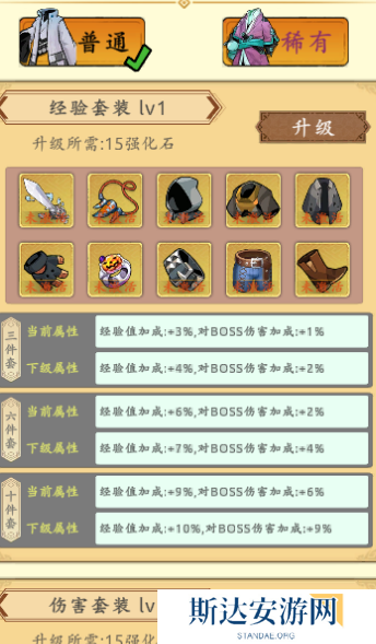 在普通套装里面,如果想快速打**和世界BOSS拿奖励,我推荐输出套,这个套是没有损耗的,一件3万,一套30万,两套60万,强烈推荐后期再买,因为确实很贵,前期有这个还不如买150的魂翼提升的属性多,也可以等150级魂翼开了之后再来买这个赌输出500万,因为只要输出有500万了,大概率就能打150级的**了。