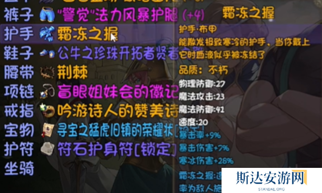 另外比较重要的就是对于装备的选择,之所以让玩家选择霜冻之握和冰川碎冰,主要是因为霜冻之握是一个能带来4点加成的护手,带上之后血液就几乎被冻结了,能提升207点的物理防御,23点的魔法攻击,最重要的是能带来四12点的魔法防御,这就表示在对战的过程中,暴击率,暴击伤害都能增加,另外寒冰伤害也能增加26%,在造成伤害的时候有50%的几率产生冰冻效果,可以很好的制衡对手。