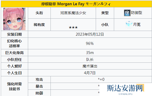 摩根勒菲:会拥有三种不一样的形态,开始主要是以输出为主,可以秒杀攻击型的敌人。到了后期就可以克制防御性的敌人,能够有效实现群秒,这就是阵容中的核心角色。