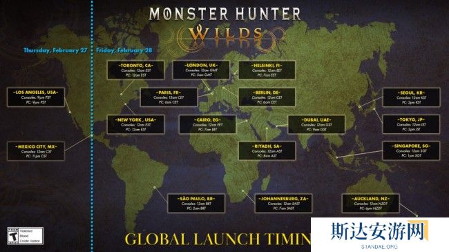 备受期待的《怪物猎人:荒野》即将在本月底正式发售,随着发售日期临近,全球玩家的热情也愈发高涨。日前,有国外玩家整理出一份详细的全球解禁时间表,明确标注了主机版与PC版的不同解禁时间,其中亚洲地区的解锁时间已确定。