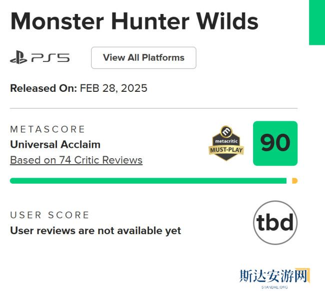 在MTC(Metacritic)评分网站上,截至目前,该作的PS5版汇总了74家媒体评分,均分达90分,稳居“PS5必玩”游戏行列,展现出极高的游戏品质。