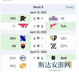 太平洋赛区第一赛段第五周rating排行:PRX三人霸占二三四名