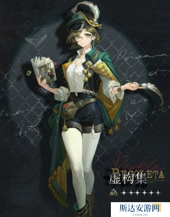 除了技能,虚构集的外形也非常有魅力。她那一头碧绿色的短发和墨绿色的衣服,显得既清新又充满智慧感。她手中拿着一本书和羽毛笔,看上去似乎是个非常沉迷于阅读的角色。不过,千万别被她外表的温文尔雅给迷惑,战斗时,她的威力可是丝毫不含糊。