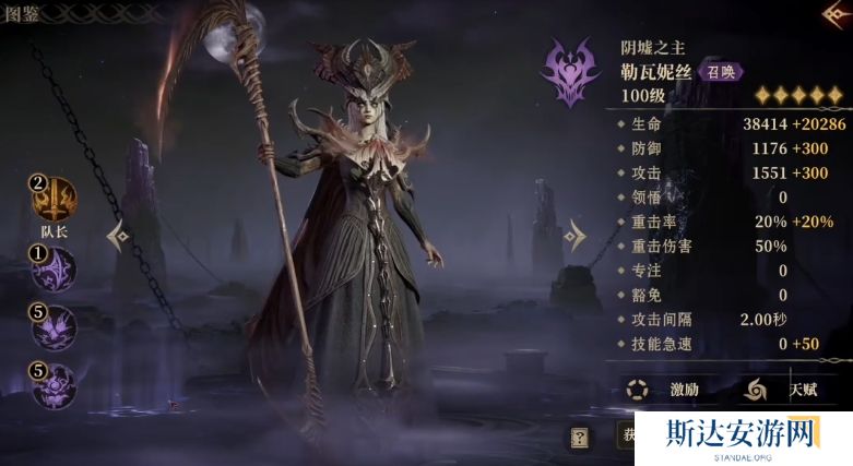 勒瓦妮丝是黯蚀之力的核心角色,队长技能够提升所有友方单位45%的重击伤害,而她所特有的被动血脉,则是每当战场上有角色陨落,无论是敌是友,她都能从中获得力量,汲取一层新的状态,最多可叠加至20 层,每层不仅为她增添1.5%的攻击力和重击伤害,当层数满额之时,更能赋予她无视敌方35%防御的惊人能力,她的战技也可以精准地锁定敌方生命值最低的目标及其周围区域,降下大片黯蚀伤害,同时还伴随着两只死尸的苏醒加入战斗,而在满层的状态下,这些死尸还会被附加巨额黯蚀伤害,终极杀招会以所有友方不死召唤物为祭品带来超高伤害。