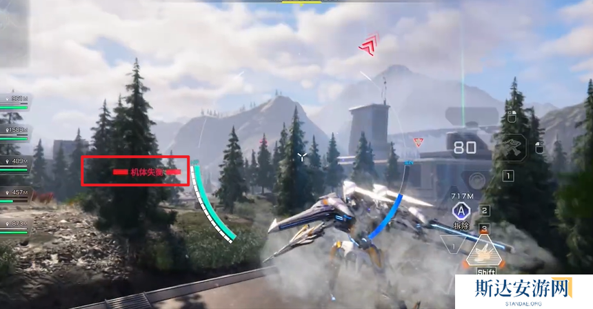 面对近战机追击时,玩家可以通过变回人形,按下快捷键 Alt 进行无能量消耗的垂直速降,快速拉开距离。