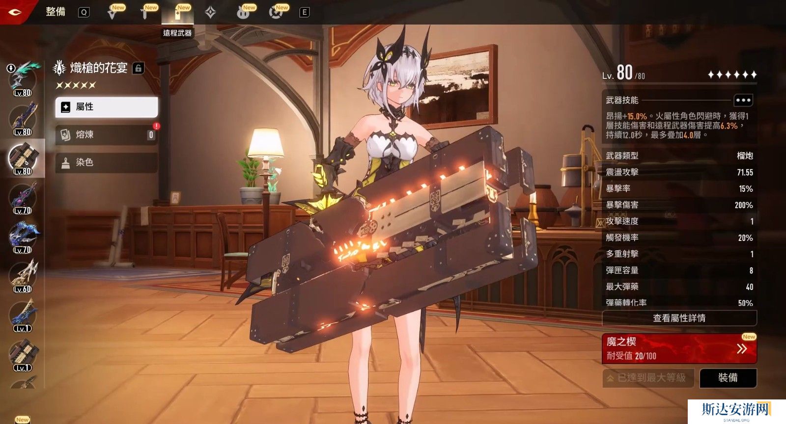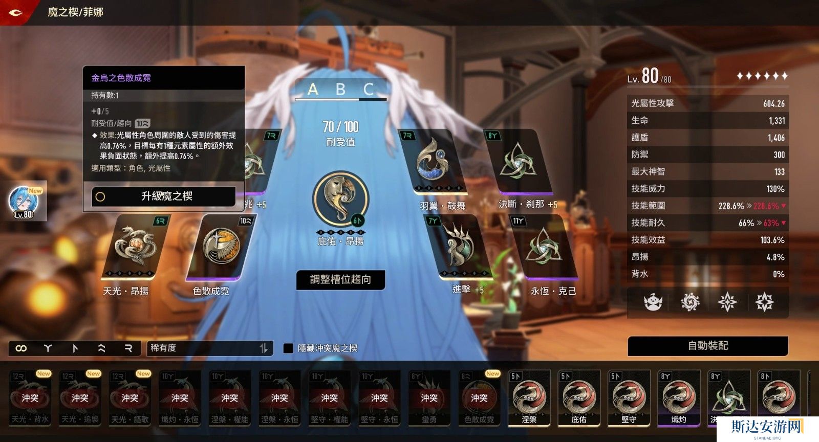 虽然本作也有类似其他游戏的角色突破系统,但在装备系统上进行了大胆创新,不再为了黏着度而强制使用随机词条,而是采用了更自由、直观的固定词条系统。游戏中的主要装备系统被称为“魔之楔”,每个角色和武器最多可以装备九个。