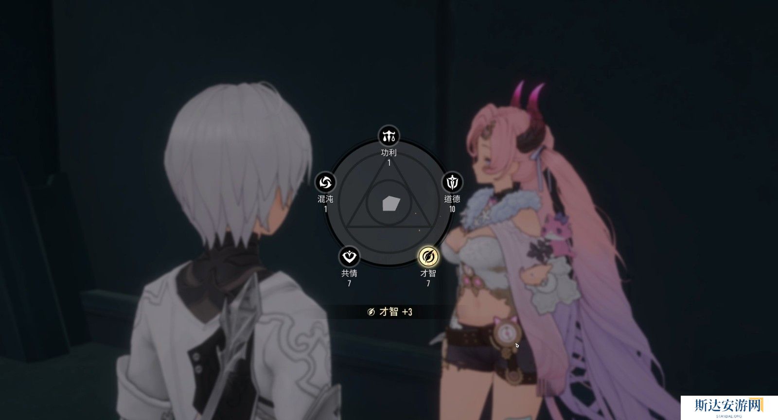 简单来说,这个系统有点像《龙与地下城》的风格,玩家通过与NPC对话时的选择,会提高自己的五维印象点数,这些点数可以在游戏商店兑换奖励,而且每个选项都有相应的文字描述。虽然这个系统不大,但能让玩家对自己的选择产生更多的沉浸感。