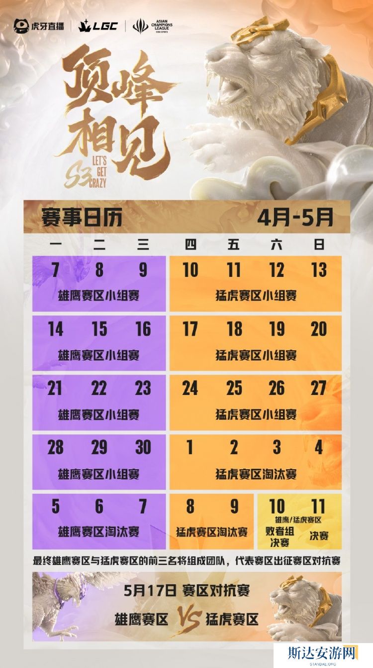 LGC传奇杯官方正式公布了S3的完整赛程,小组赛三周,赛区对决将在5月17日进行。