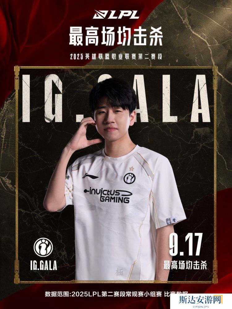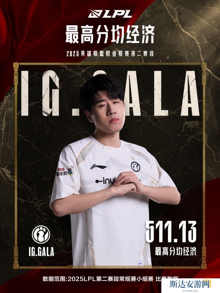 2025LPL第二赛段常规赛小组赛已落幕,LPL官方发布了第二赛段小组赛上的各项选手数据,其中iG下路选手在KDA、总击杀、分均伤害、分均经济、场均击杀五项数据位列第一!