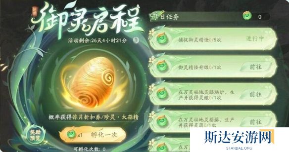 达到9级完成「御灵启程」中的「每日任务」获得孵化次数,孵化蛋可以获得包含「弥月礼券」、「珍灵·大蒜精」、「清云灵葫」、「佳品灵酿」等多种养成材料。