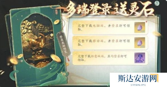 完整下载PC端、移动端任意一端并使用同一账号登录游戏,即可在活动界面领取到「灵石」,完整下载双端即可领取紫色御灵「正一附灵·雷」