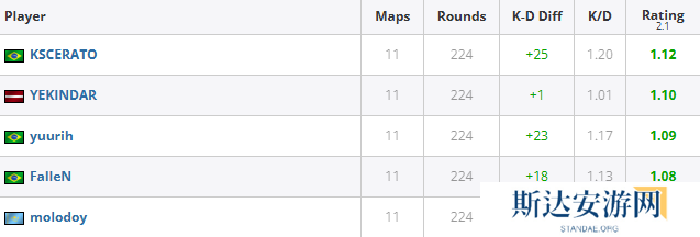 以下为为FURIA队员们在本次PGL 阿斯塔纳站小组赛中的数据: