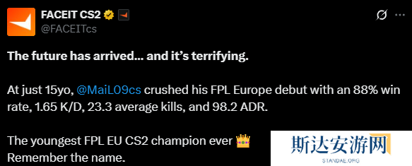 Johnny Speeds战队的瑞典天才少年MaiL09最近在FPL打破了一项由donk在2023年创造的纪录,以15岁零334天年龄成为CS历史上最年轻的FPL欧洲区冠军。