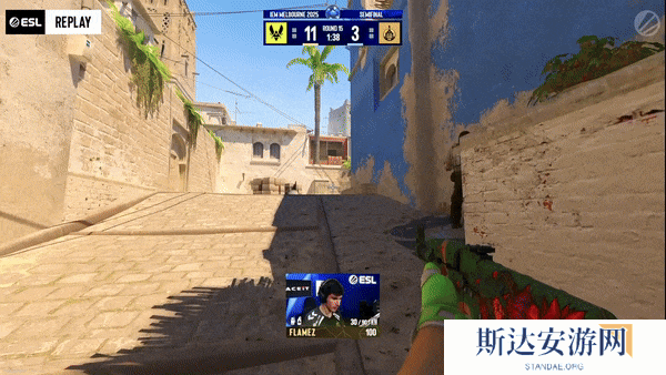 Vitality先做进攻方。手枪局CT外场铁板均被秒,flameZ三杀。