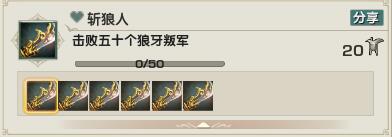 1、斩狼人:传到【天策·战乱】-【青骓牧场】杀50个【狼牙叛军】