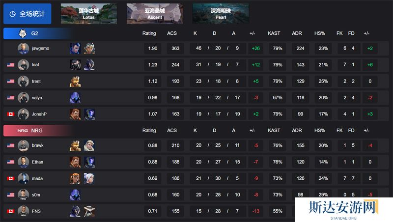 2025 VCT 美洲联赛第一赛段,小组赛Omega组,G2对阵NRG。jawgemo全场火力拉满,轰下46杀、363 ACS和1.81 Rating,G2两张地图合计仅让NRG拿到7分,直落两图强势横扫碾压对手,迎来开赛三连胜。