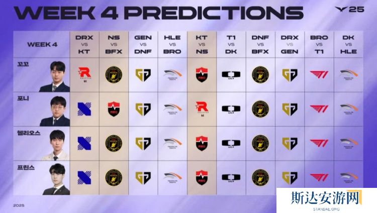 直播吧4月23日讯 LCK常规赛本周赛事开始前,官方公布了各解说对赛事的结果预测;