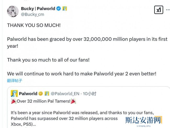 沟通经理Bucky补充表示,将继续努力,让《幻兽帕鲁》在发售第二年更好: