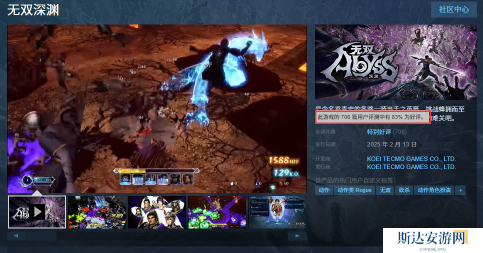 光荣特库摩新作《无双深渊》已经正式发售,目前该作在Steam获得了玩家们的“特别好评”评价。