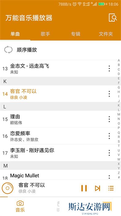 3、分类清晰,查找方便:按歌手、专辑、文件夹、歌单等分类管理音乐。