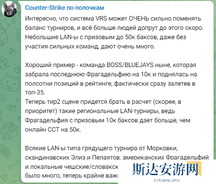 “有趣的是,VRS系统可以极大地改变比赛的平衡性,而且很快就会有越来越多的队伍加入其中。比如奖金池5万英镑的小型线下赛事,就算没有顶尖战队参赛,也能带来不小的收益(积分)。