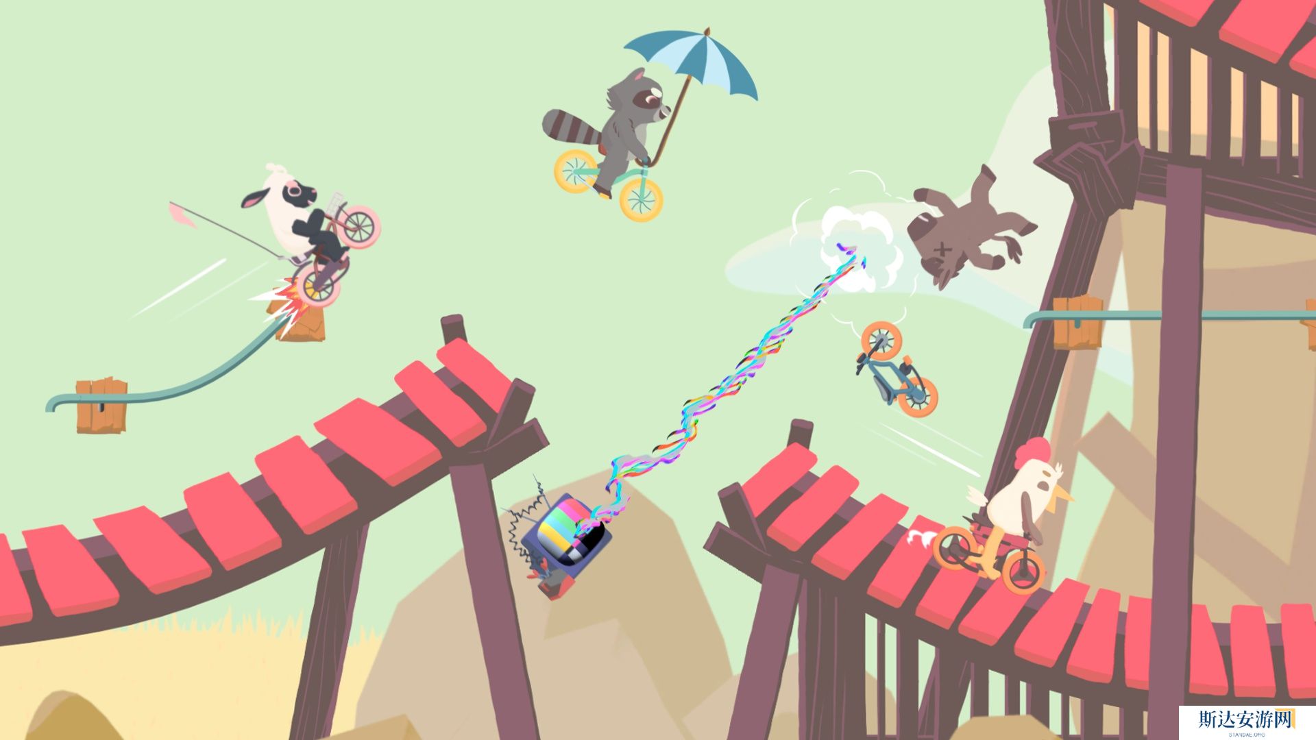 《超级浣熊羊》是一款由 Clever Endeavour Games开发的自行车竞速派对游戏。在与朋友们共同打造的惊险赛道上挑战遍布的障碍物与致命陷阱,尽情施展炫酷特技,使用强化道具取得领先,最终赢得比赛!